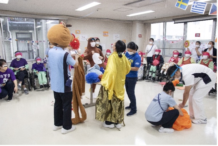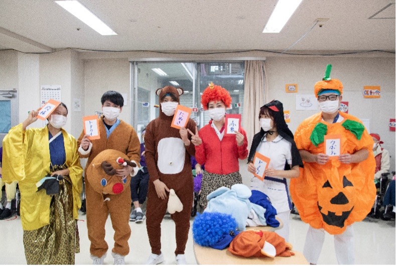 職員対抗戦では患者さまからの熱い応援を受けながら、慣れない衣装に苦戦しつつも笑顔あふれる時間となりました。