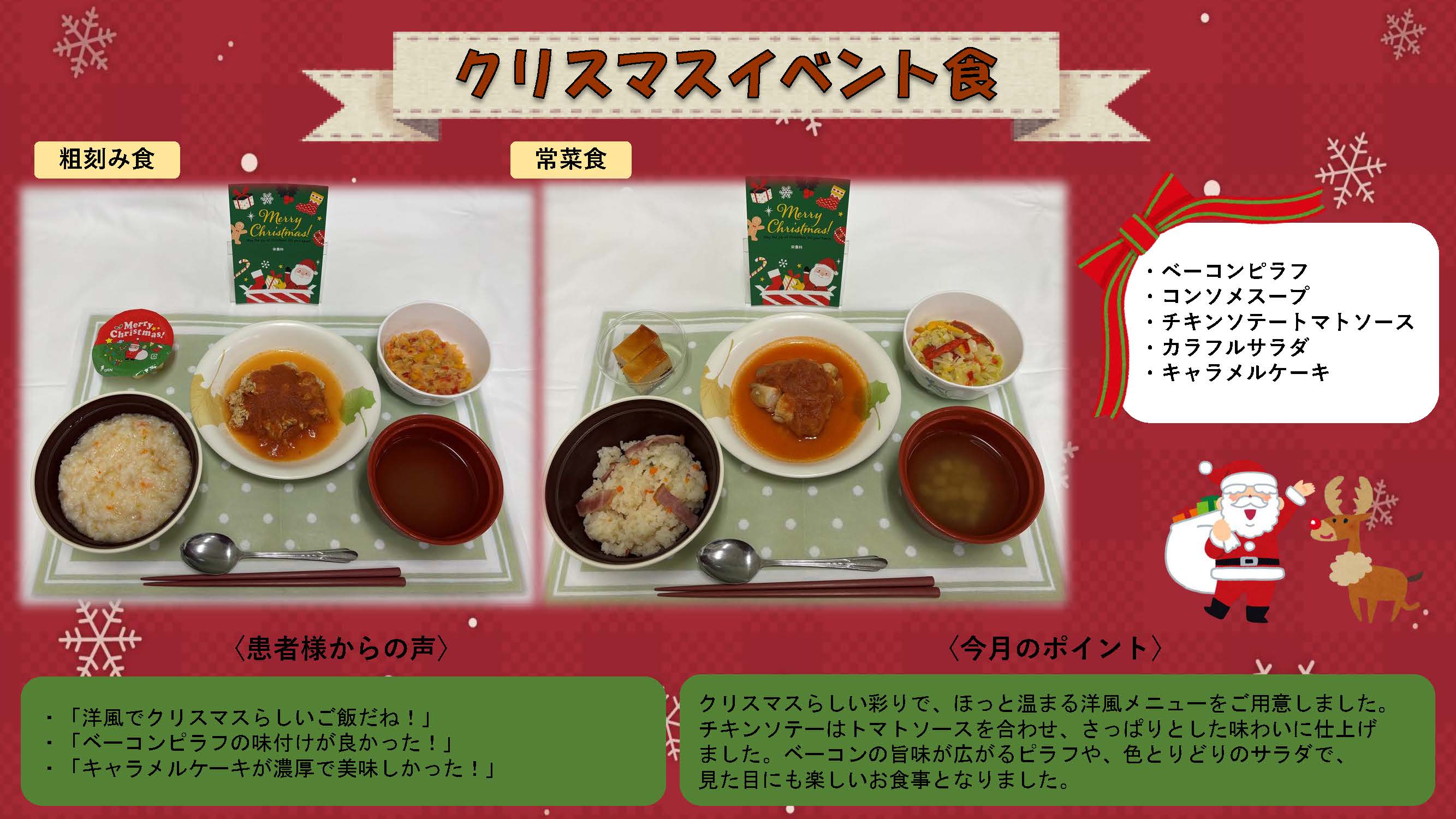 【栄養科よりお知らせ】クリスマスイベント食を実施いたしました
