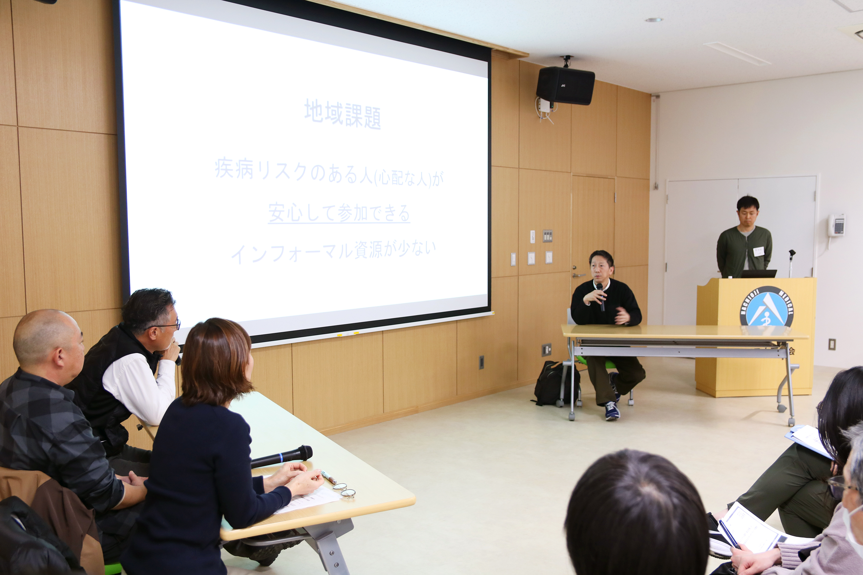 登壇者の皆さんもさまざまなサービスの提案をしつつ、参加者の第二層SCに意見を聞く場面も。突然の無茶振りだったものの、地域で行われている農園ボランティアに参加する自立支援の例を紹介してくれました。