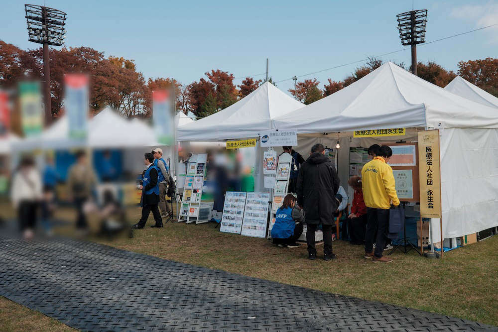 今年も八王子市の秋の恒例イベントである「いちょうまつり」に出展し、2日間とも天候に恵まれ、大勢の来場者で大変にぎわいました。想定を上回る数の方々にお越しいただき、当法人が関わる八王子市・東京都からの委託事業、そして永生会としての地域への取り組みを、市民の皆さまに広く知っていただく貴重な機会となりました。