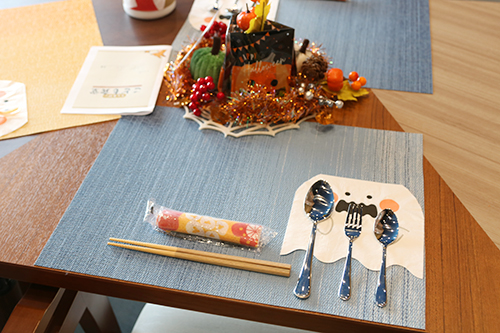 テーブルにご家族分の料理が提供されるとスタッフも一緒に着座し、お食事の介助に入ります。