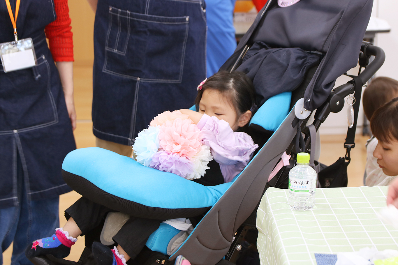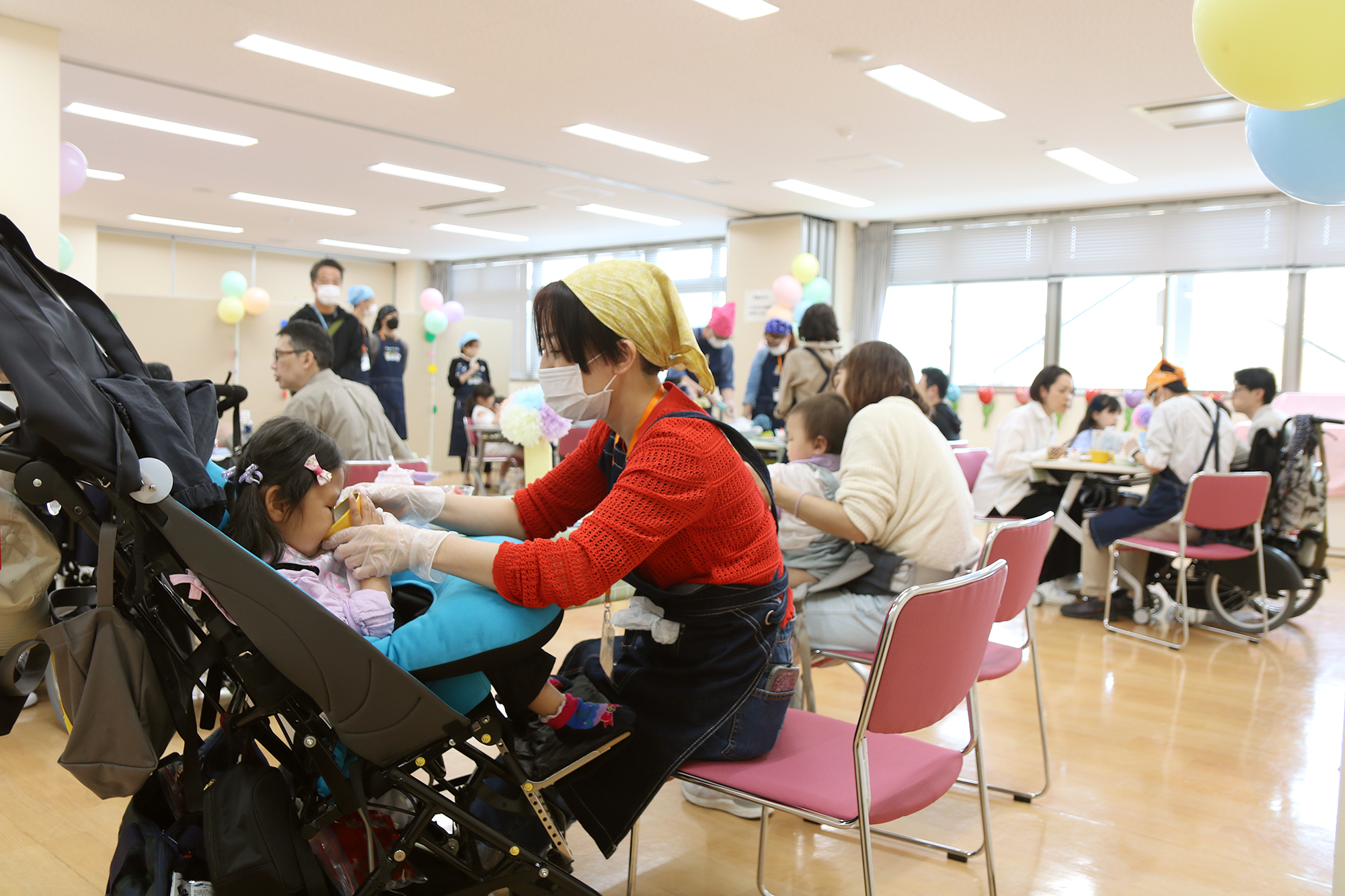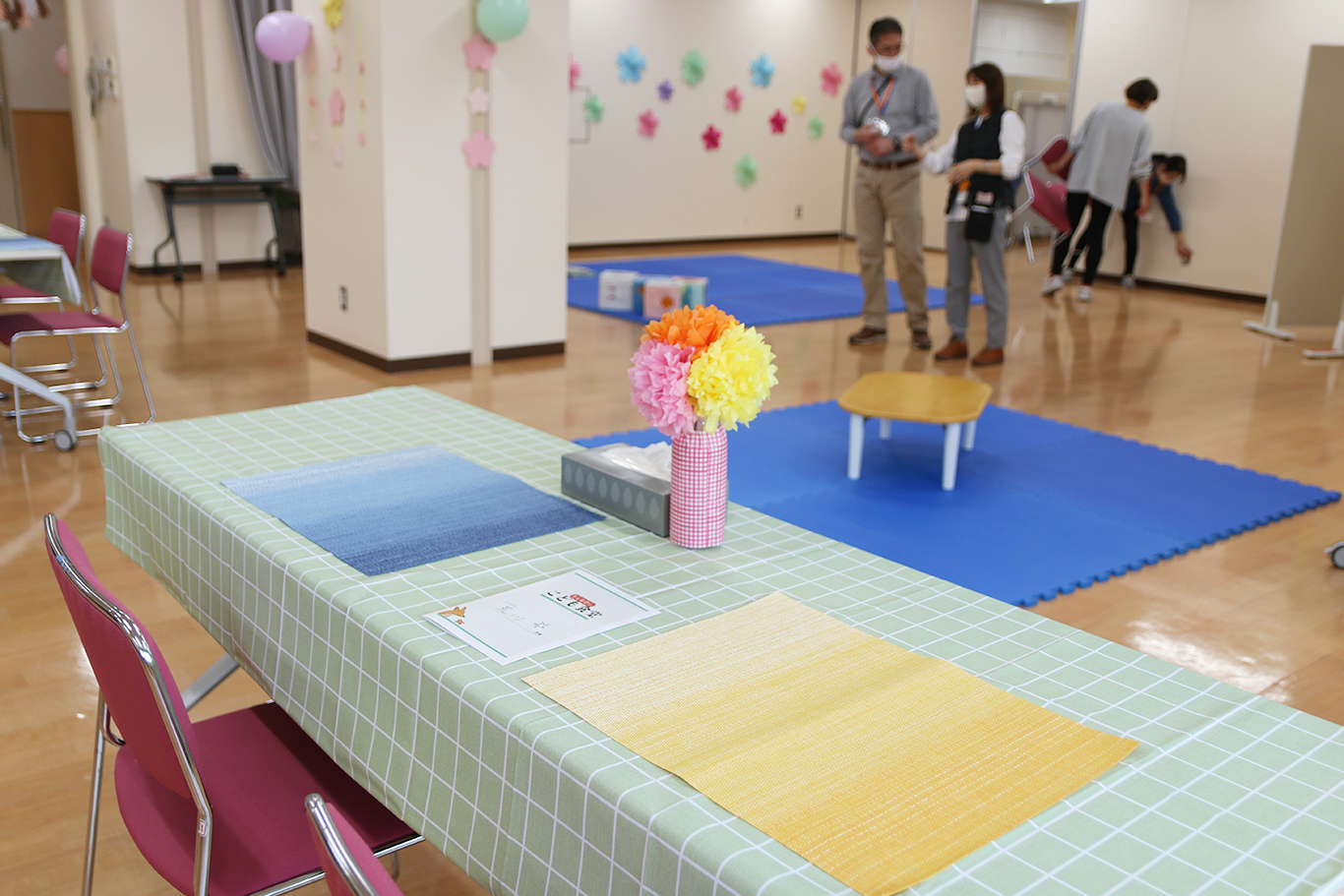 車椅子でのご来場に合わせ、今回はゆったり余裕のある広さに設定しました。プレイエリアもいつもの倍のサイズを確保し、お子さんたちが思い切り楽しめる空間を整えました。