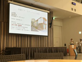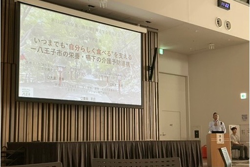 永生会グループのスタッフが参加し、「いつまでも“自分らしく食べる”を支える一八王子市の栄養・嚥下の介護予防連携一」をテーマに登壇しました。八王子市の介護予防に関わる市職員と永生会のスタッフと行う協働の実践報告となりました。