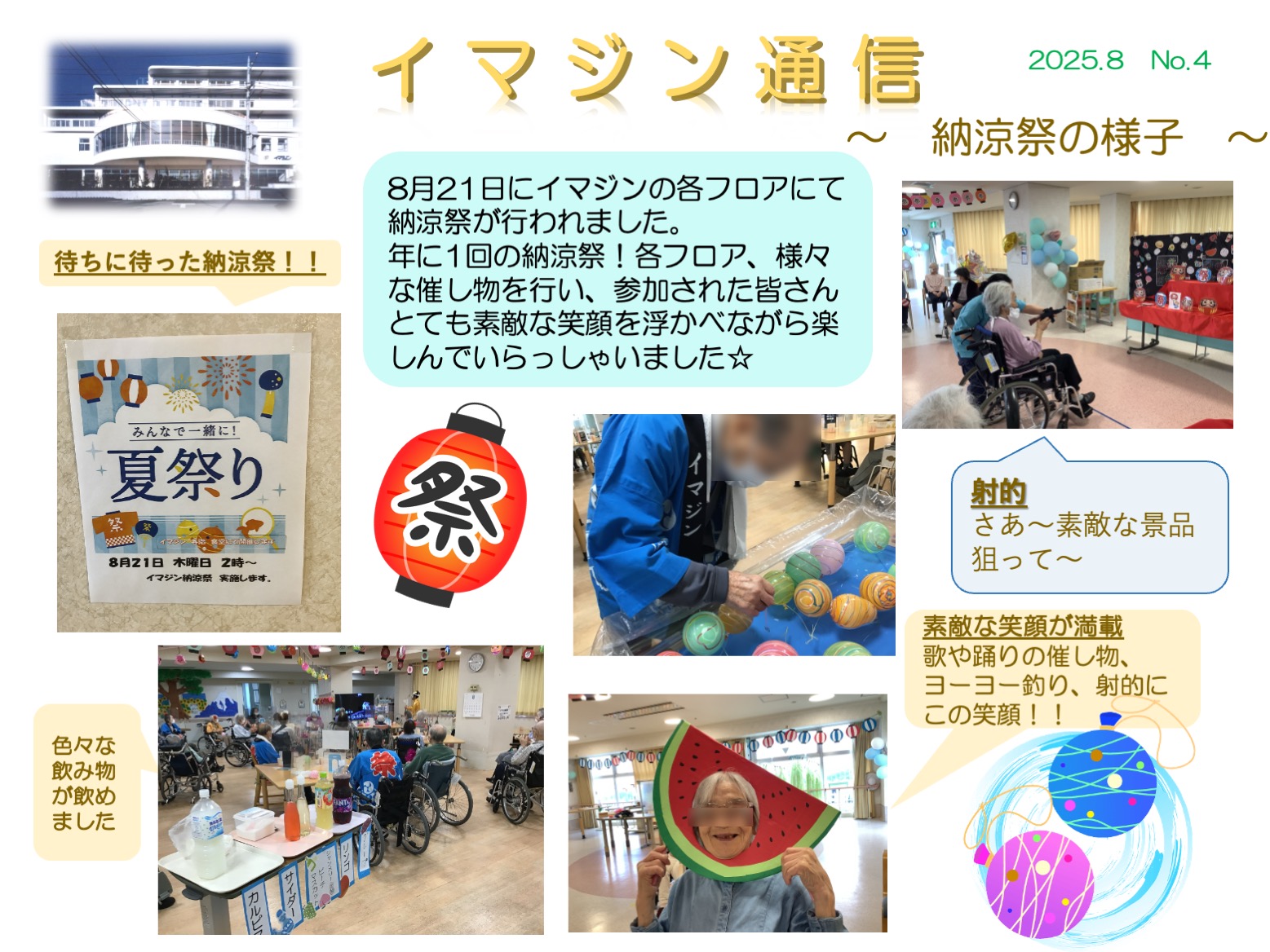 イマジン通信 イマジンでは、施設内の様子がわかる情報として不定期にイマジン通信を発行しております。 ぜひご覧ください。 2025年 イマジン通信Vol.1 (PDF ファイル 0.94MB) イマジン通信Vol.2 (PDF ファイル 3.5MB) イマジン通信Vol.3 (PDF ファイル 0.61MB) イマジン通信Vol.4 (PDF ファイル 0.89MB) 2024年 イマジン通信No8 (PDF ファイル 1.65MB) イマジン通信vol9 (PDF ファイル 1.91MB) イマジン通信Vol.10 (PDF ファイル 1.44MB) イマジン通信No4 (PDF ファイル 1.32MB) イマジン通信No.6 (PDF ファイル 1.34MB) イマジン通信No.7 (PDF ファイル 1.72MB) イマジン通信No1 (PDF ファイル 1.35MB) イマジン通信No2 (PDF ファイル 0.83MB) イマジン通信No3 (PDF ファイル 1.17MB) 2023年 イマジン通信No10 (PDF ファイル 1.63MB) イマジン通信No.7 (PDF ファイル 1.28MB) イマジン通No8 (PDF ファイル 1.46MB) イマジン通信No9 (PDF ファイル 1.18MB) イマジン通信No.4 (PDF ファイル 1.16MB) イマジン通信No.5 (PDF ファイル 1.11MB) イマジン通信No.6 (PDF ファイル 0.94MB) イマジン通信No.1 (PDF ファイル 1.09MB) イマジン通信No.2 (PDF ファイル 1.08MB) イマジン通信No.3 (PDF ファイル 1.21MB)