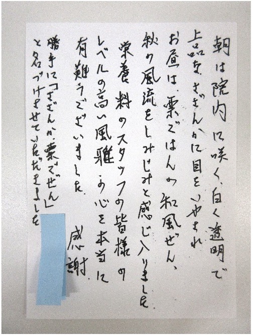 患者様からのお手紙
