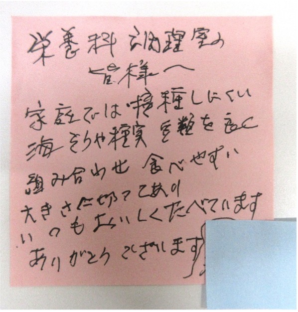 栄養科調理室の皆様へ