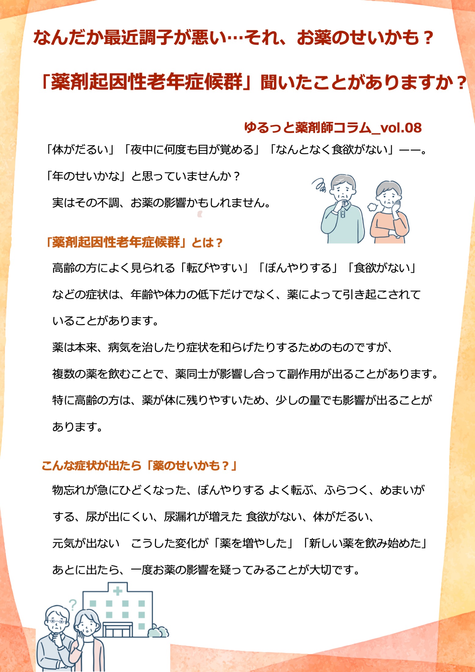 【ゆるっと薬剤師コラム】Vol.08 薬剤起因性老年症候群