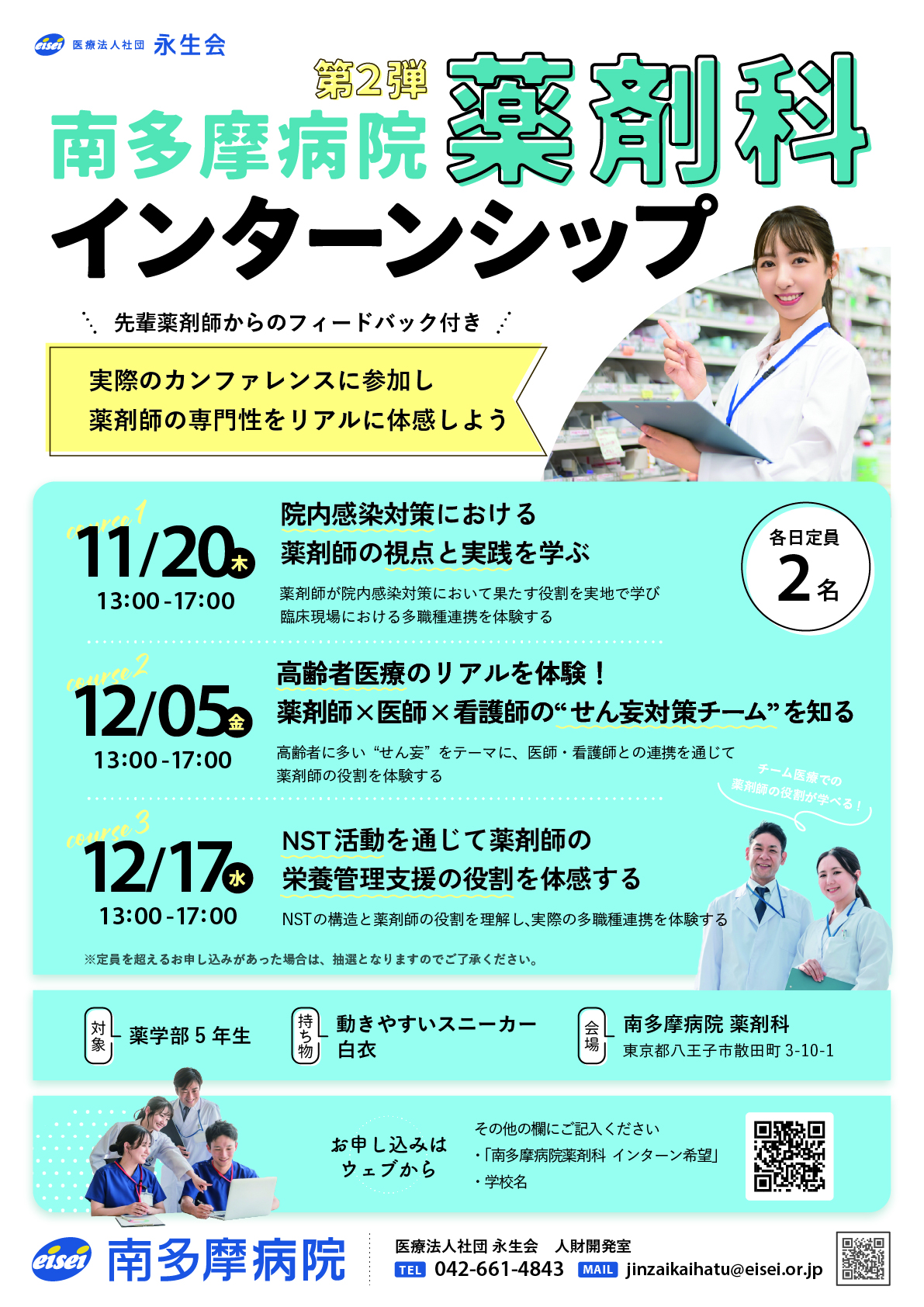 ホーム > 説明会・院内見学 > 南多摩病院 薬剤科インターンシップ