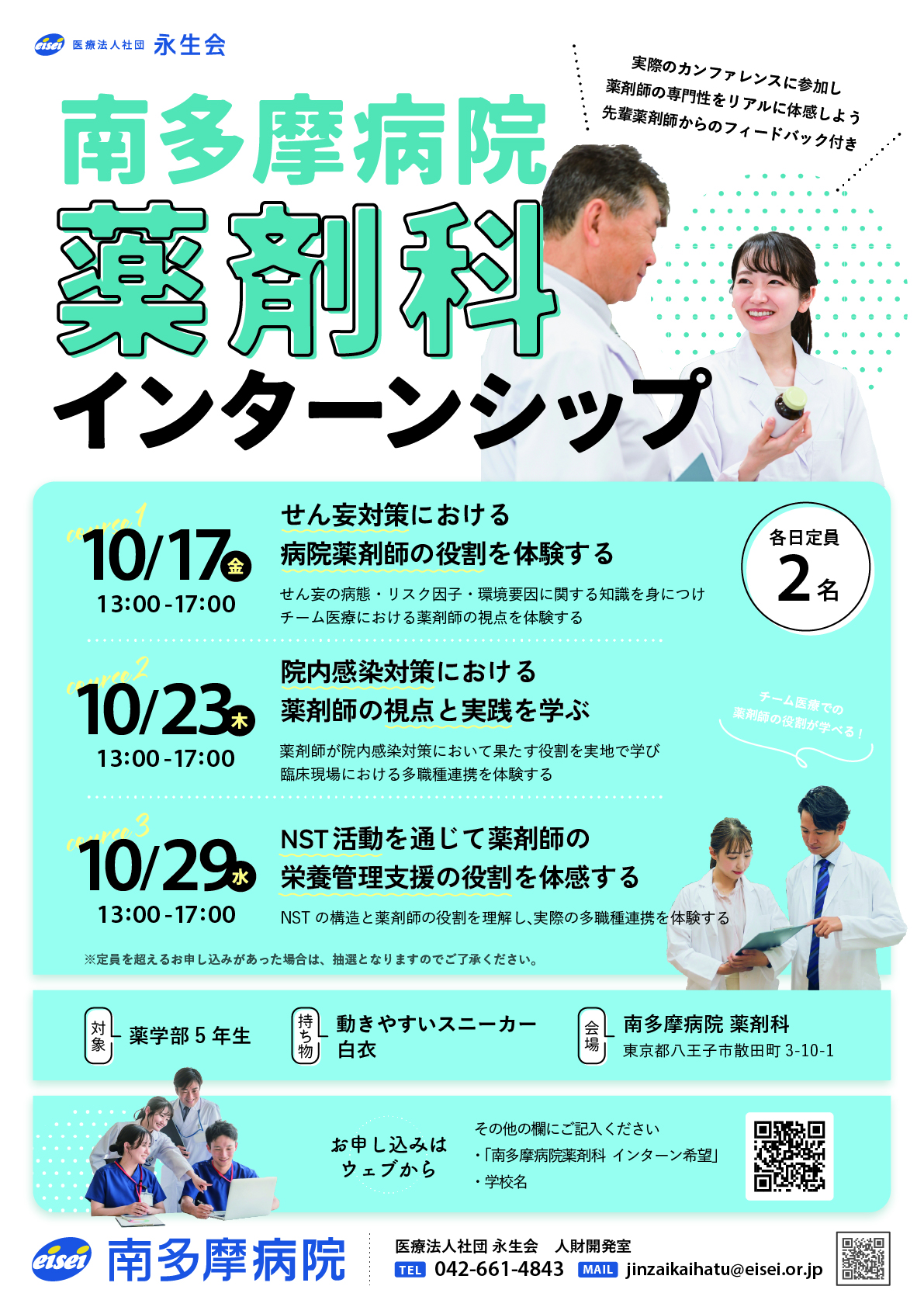 ・「南多摩病院薬剤科 インターン希望」 ・学校名